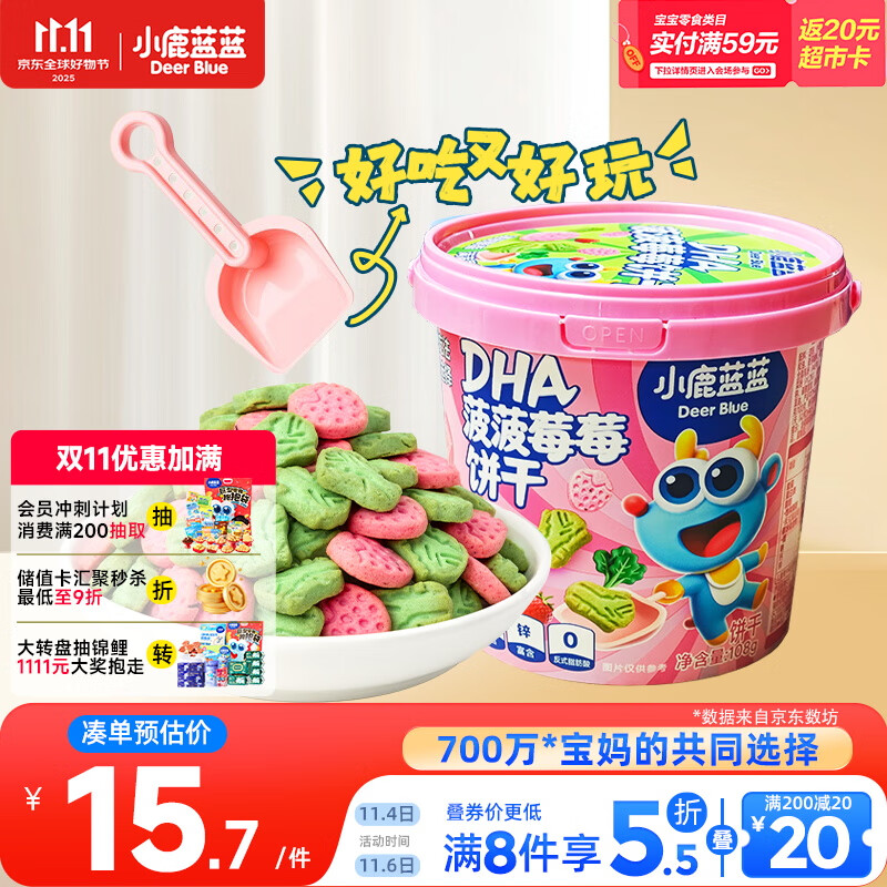 包邮 小鹿蓝蓝菠菠莓莓宝宝饼干菠菜草莓味儿童零食卡通饼干蔬菜儿童饼干108g